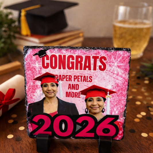 I was scanning through some images of what I wanted to give my daughters for Mother’s Day and this image caught my eye. I immediately contacted Paper Petals and More to find out if I could get help with my idea. Immediately I received a resounding yes. I received ideas of what could be done . Finally, a received a picture of the Square Rock Slate Keepsake with suggestions to make it more personalized. I was extremely happy with the outcome and my daughters were pleased as well! The gift was even made available to me as requested. Sarah, owner, made my idea come to life in a short time! I will most definitely use Paper Petals and More, again! Thanks Sarah!!!