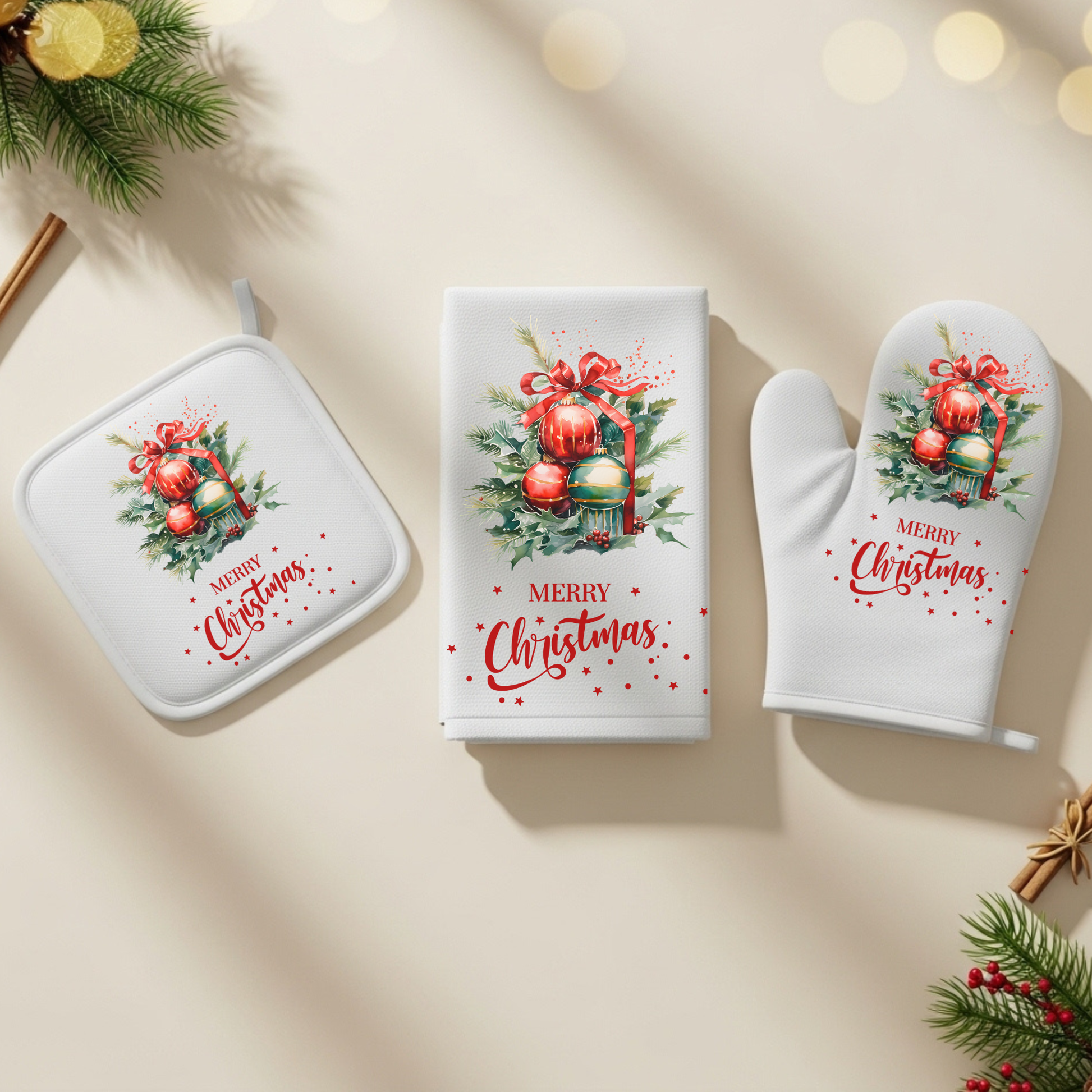 Christmas Kitchen Trio Set – Towel, Pot Holder & Oven Mitt