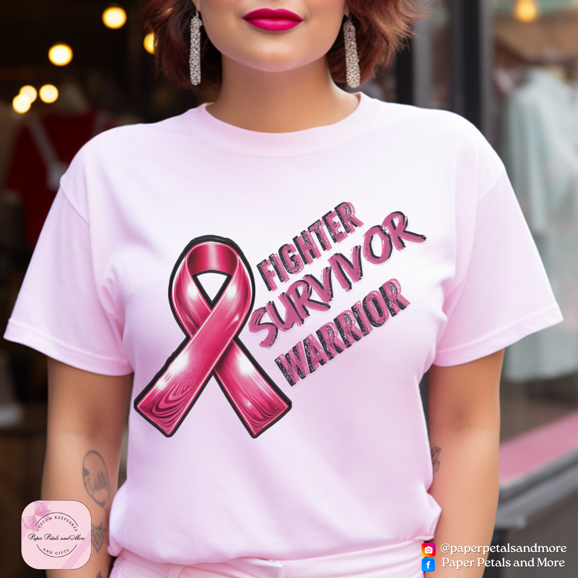 1 White “Fighter • Survivor • Warrior” T-Shirt (Unisex Fit)