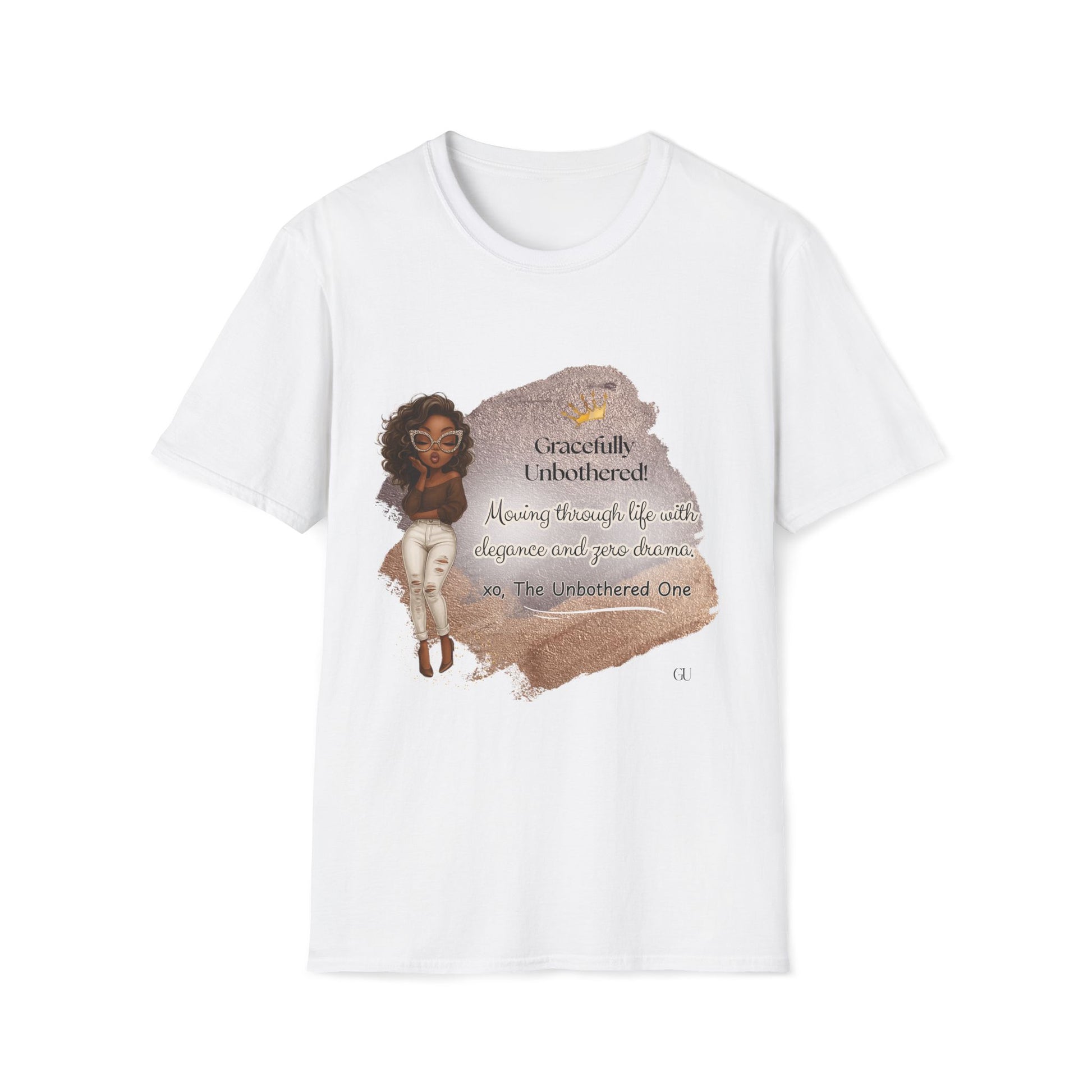 Step into effortless confidence with the Gracefully Unbothered™ “Elegance & Zero Drama” T-shirt, designed for women who embrace grace and style without the chaos. This soft, breathable tee keeps you comfortable all day, whether you’re handling business, brunching with friends, or simply owning your peace. The relaxed fit flatters all body types, while the bold digital illustration featuring a mocha toned queen in chic style makes a statement of poise and empowerment everywhere you go.
