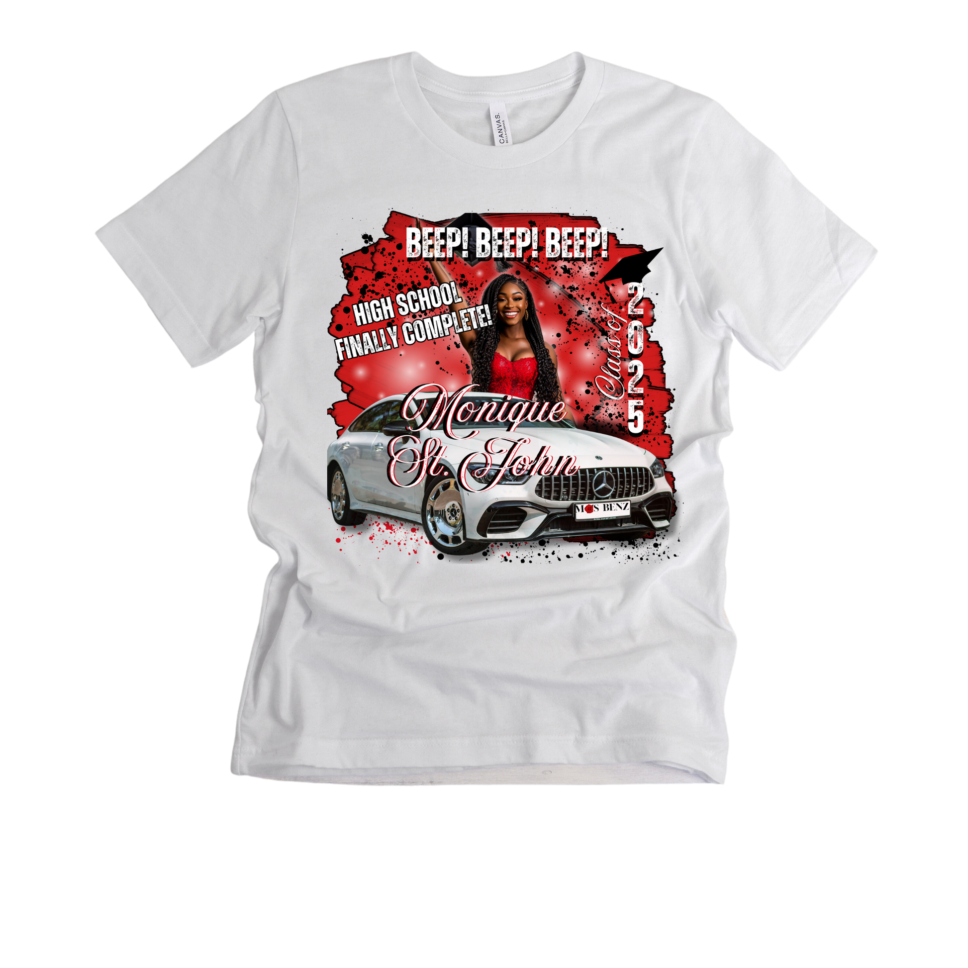 Custom Graduation T-Shirt – "BEEP! BEEP! BEEP! High School Finally Complete!"