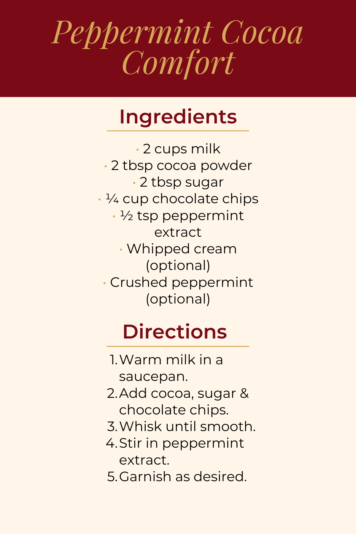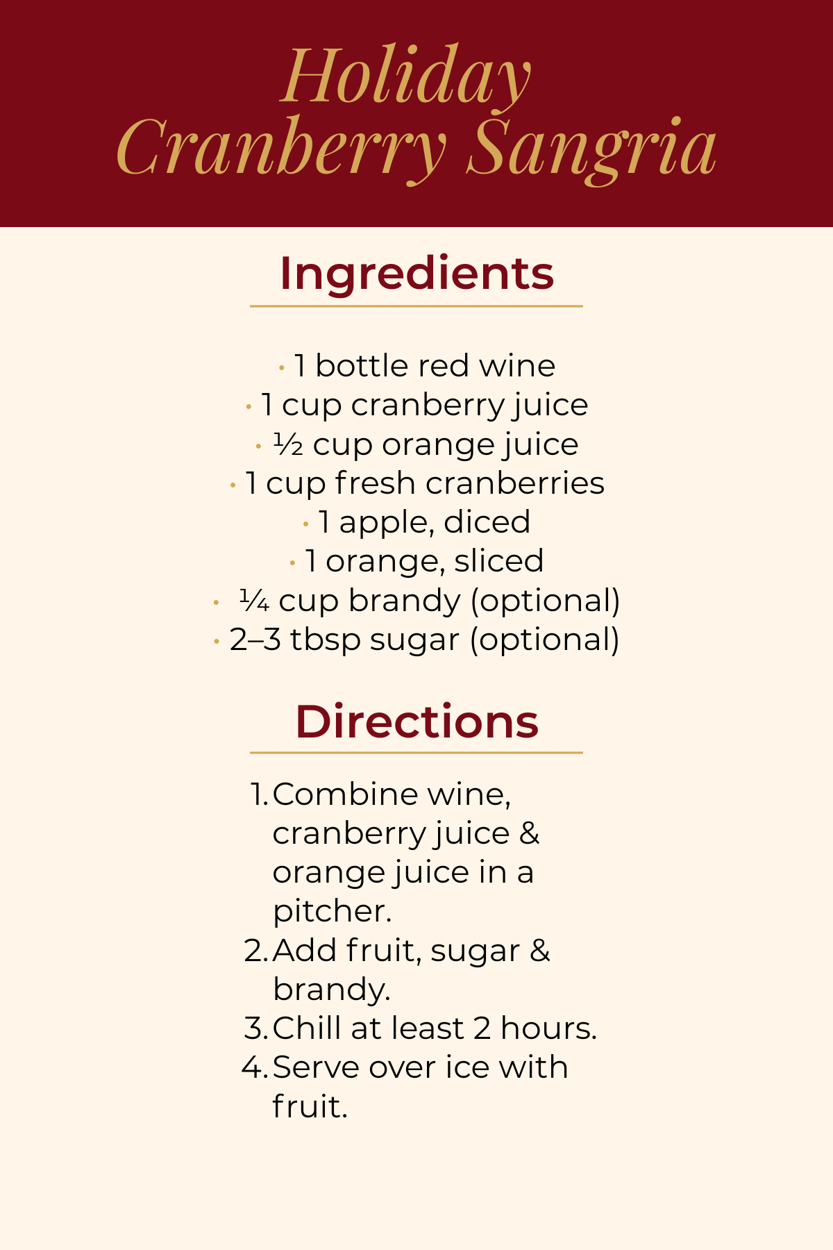 Deep red + gold accents, clean layout, kitchen-friendly size. -